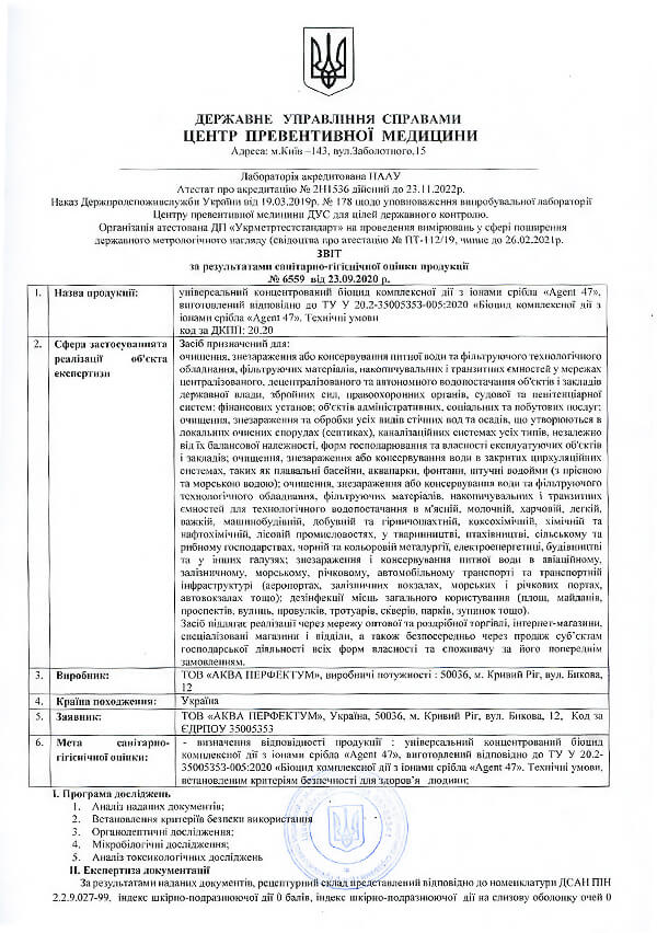 - очищення, знезараження або консервування питної води та фільтруючого технологічного обладнання, фільтруючих матеріалів, накопичувальних і транзитних ємностей у мережах централізованого, децентралізованого та автономного водопостачання об'єктів і закладів державної влади, збройних сил, правоохоронних органів, судової та пенітенціарної систем; фінансових установ; об'єктів адміністративних, соціальних та побутових послуг;